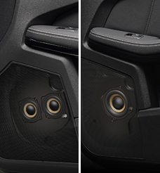車前門安裝的「The Suite Unison-Array」(左)和車后門安裝的「The Suite Extend-Woofer」(右)。每一個(gè)揚(yáng)聲器都會(huì)在汽車內(nèi)部安裝,外觀上不會(huì)有任何改變(圖象為合成,實(shí)際安裝后是看不到揚(yáng)聲器的)。
