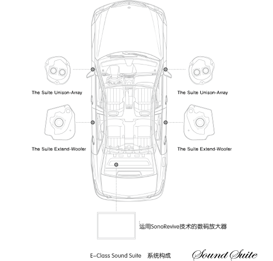 無論是音質(zhì)音域的調(diào)整還是電力增幅,都可以進(jìn)行嚴(yán)格控制的數(shù)字放大器●將原裝音響的聲音高品質(zhì)重現(xiàn)的SonoRevive技術(shù)●由兩組共四個(gè)口徑只有52毫米的寬頻驅(qū)動(dòng)器SD-N52N組成的無縫高精度鋁壓鑄全頻驅(qū)動(dòng)器「The Suite Unison-Array」●裝有專用端口調(diào)節(jié)器、由一組共兩個(gè)頂級(jí)微型揚(yáng)聲器組合「SD-N77N」組成的雙重高精度鋁壓鑄可添加式揚(yáng)聲系統(tǒng)「The Suite Extend-Woofer」●根據(jù)乘客的有無而進(jìn)行的音域和音質(zhì)的調(diào)節(jié)、和根據(jù)車門的開關(guān)和與倒車檔聯(lián)動(dòng)的而對(duì)音響開關(guān)進(jìn)行操作的全自動(dòng)化控制