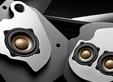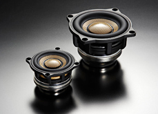 「The Suite」系列產(chǎn)品中的一種揚聲組合。左為口徑52mm的寬頻驅(qū)動揚聲器「SD-N52N」,右為口徑77mm中低音揚聲器「SD-N77N」。