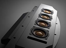 「The Suite PREFIX」的前聲場揚聲器,裝備了全頻揚聲器驅(qū)動系統(tǒng)「The Suite Unison-Array」。該系統(tǒng)是從口徑只有52mm,純手工制作的高級揚聲器「SD-N52N」(NN系列)中優(yōu)中選優(yōu)組合而成的。該揚聲器不僅配備了能驅(qū)動口徑達30cm低音炮的永久釹磁石,還濃縮了大口徑音圈產(chǎn)生的高強度電磁回路。剛性,輕小和適度的內(nèi)部損耗三者兼而有之的新型芳綸合成材料振動板和高剛性鋁制一體型揚聲器音箱等高端音響產(chǎn)品技術(shù),是聲麗創(chuàng)音在揚聲器系統(tǒng)方面科技水平的集中體現(xiàn)。「The Suite Unison-Array」系統(tǒng)中,每個聲道對應(yīng)由2個或4個SD-N52N直線排列的揚聲器組合,利用音柱原理營造出最理想的音響效果。該系統(tǒng)對左右聲道所有單元的特性都進行了細致考量,并對產(chǎn)品進行了精心篩選和組合以達到音色協(xié)調(diào),音質(zhì)純凈自然,沒有一絲人工雕琢的痕跡。另外,「The Suite PREFIX」的前聲場揚聲器還采用了無縫鋁壓鑄方法來打造全封閉一體型揚聲器音箱,在獲得充足內(nèi)容積的同時還具備了高剛性和低共振等特點。